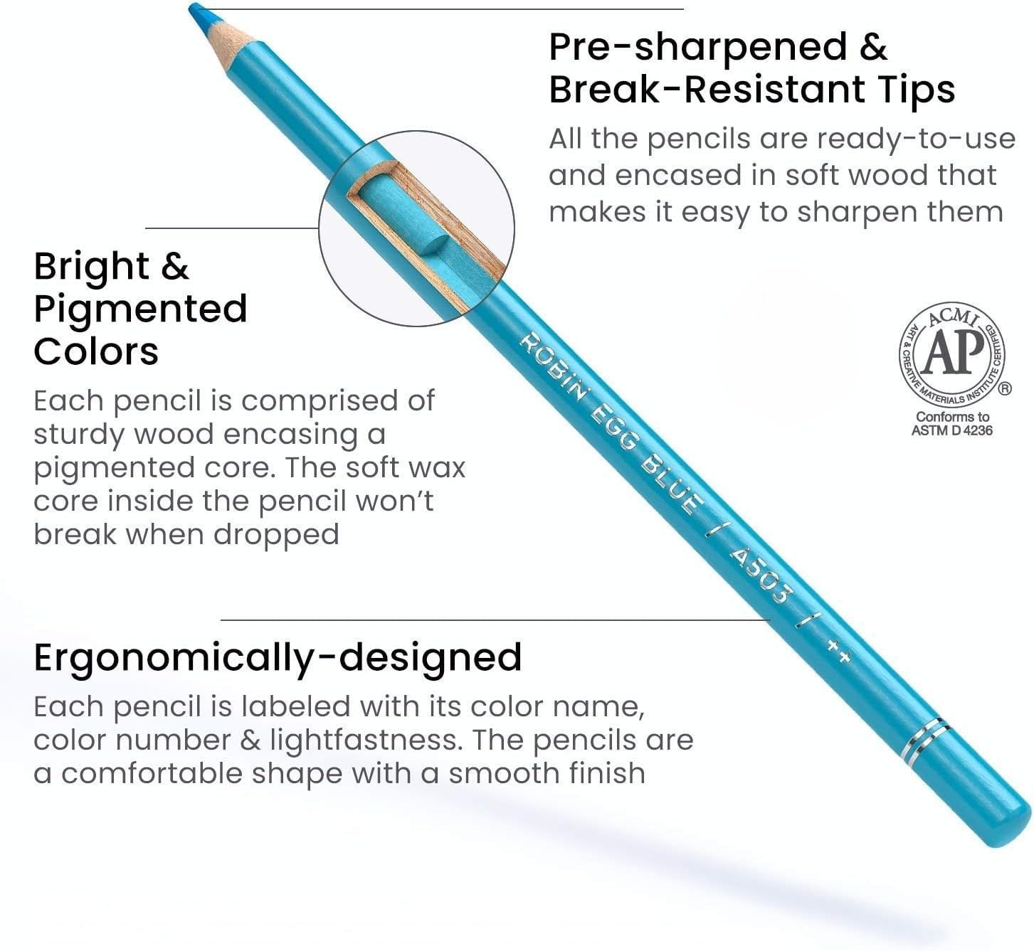 - CLEARLY LABELED FOR QUICK COLOR SELECTION – Every pencil is labeled with its color name, number, and lightfast rating, so you can find your shade fast and stay in your creative flow. No more guessing mid-project—just grab, sketch, and create.
