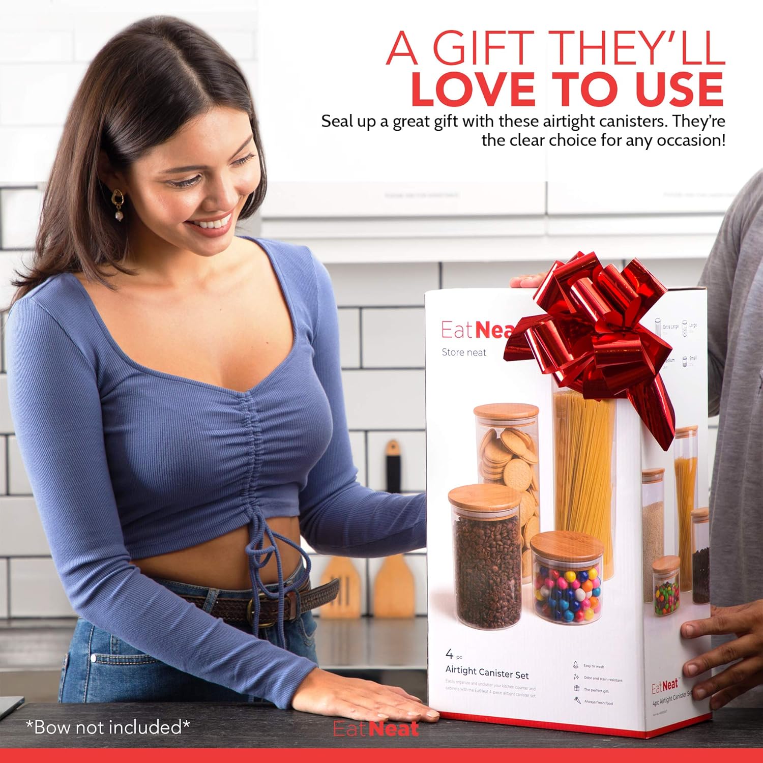 EatNeat 4‑Piece Glass Canister Set with Airtight Bamboo Lids