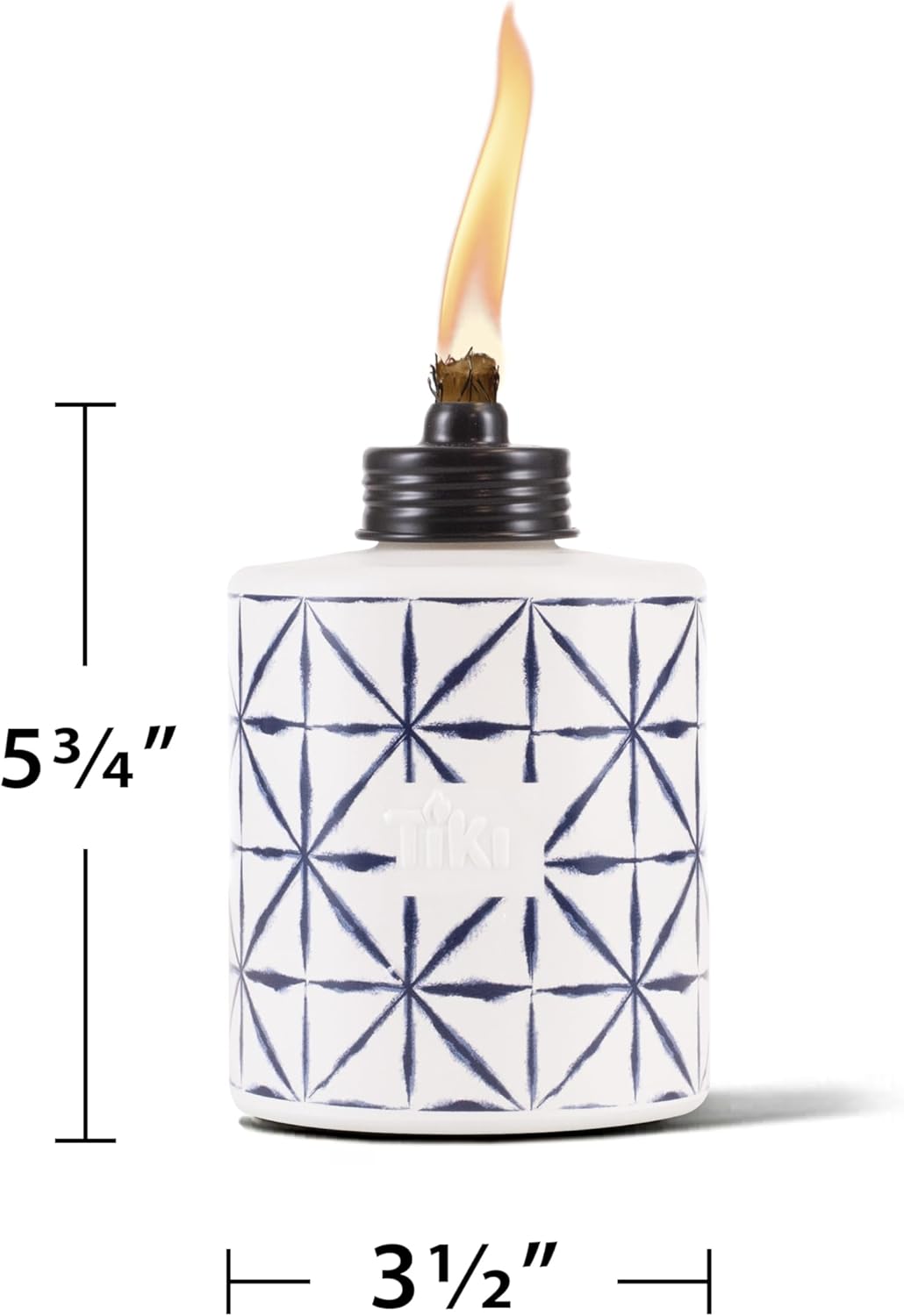 - OUTDOOR DECOR: These tie dye design table torches make a perfect centerpiece to illuminate your table. They come with long-lasting fiberglass wicks, & each has a metal snuffer to extinguish its flame