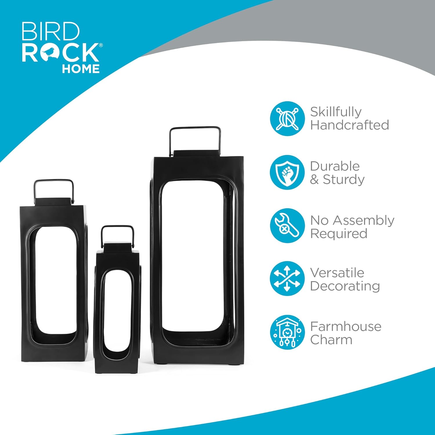 The BirdRock Home lantern set includes three sizes, allowing you to get creative with your decorating. Whether grouped together or placed separately, these lanterns enhance the ambiance of any setting.