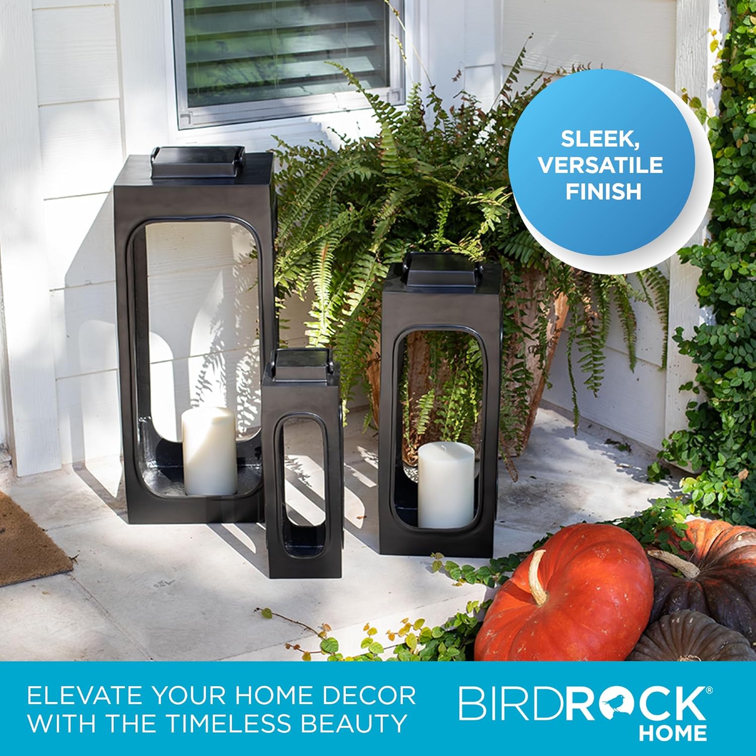 Add a beautiful farmhouse accent to your front porch, backyard, or home with BirdRock Home lanterns. Perfect for creating a magical scene with artificial outdoor candles (candles sold separately), they bring warmth and style to any space.