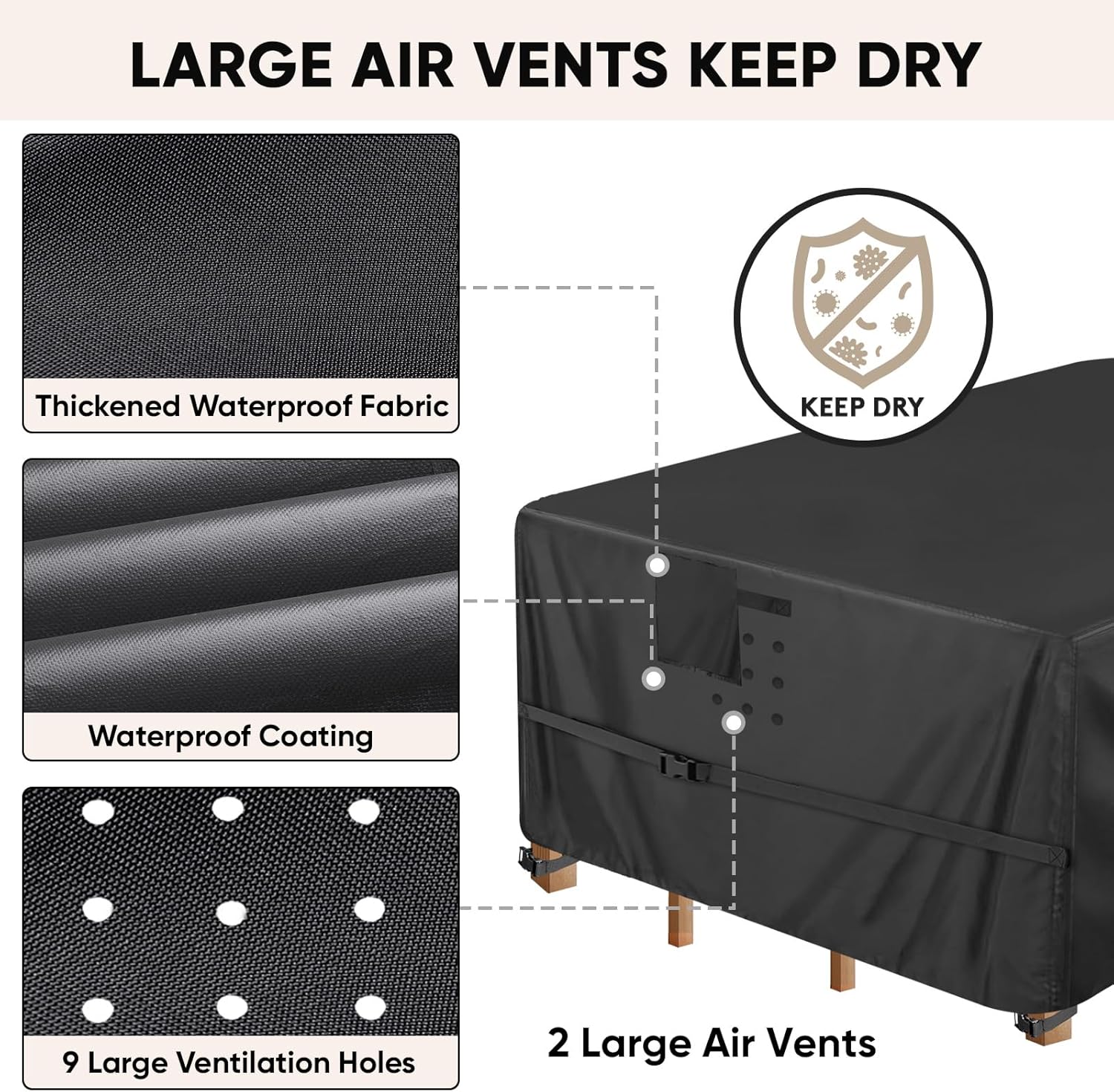 • Ventilation Breathable: This outdoor table cover is designed with airflow vents to ensure breathability, preventing moisture from being trapped, keeping your furniture fresh and dry
