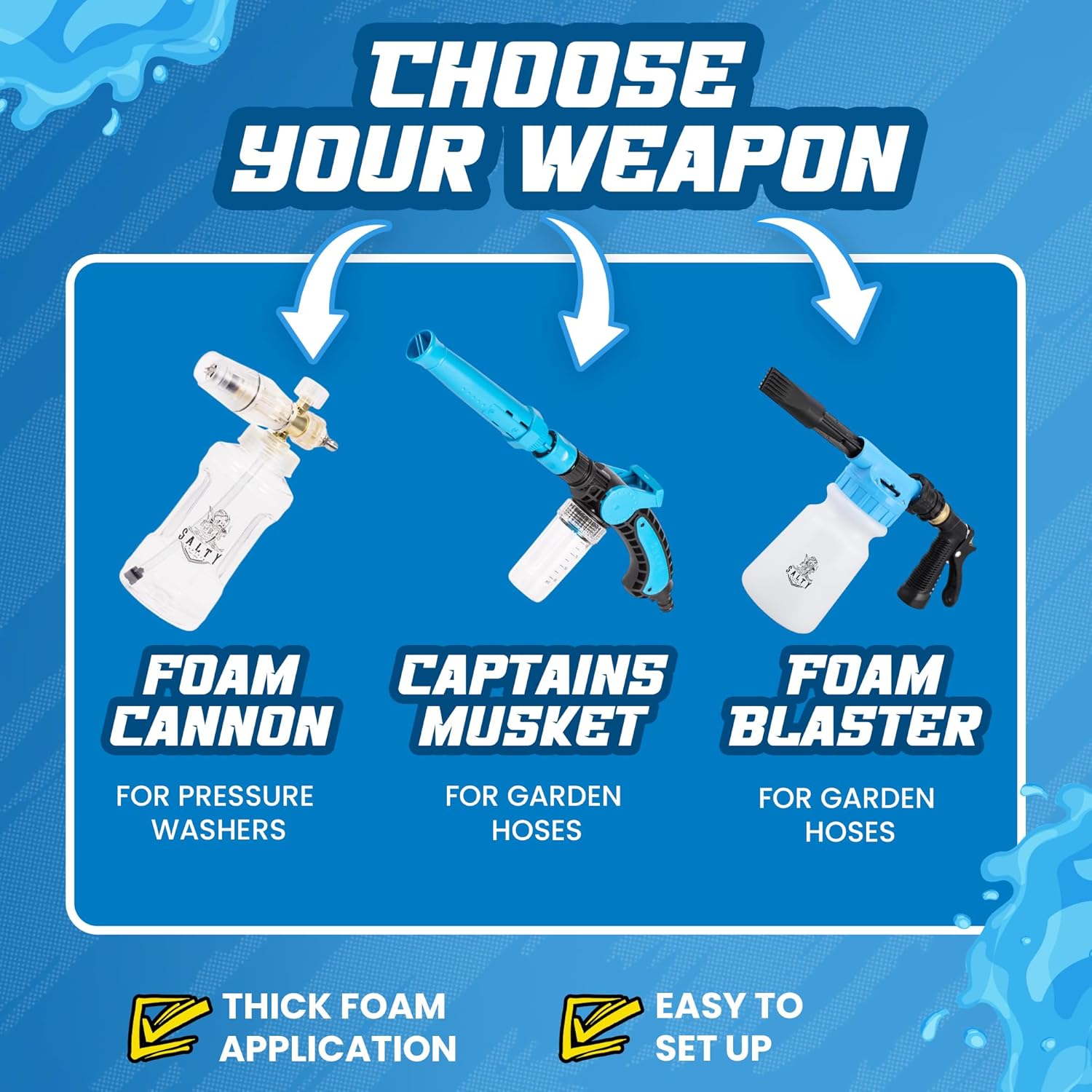 • COMPATIBLE WITH A GARDEN HOSE: The Captain’s Musket is specifically designed for easy connection to a garden hose, ensuring effortless washing with thick, rich suds and optimal coverage for thorough cleaning.