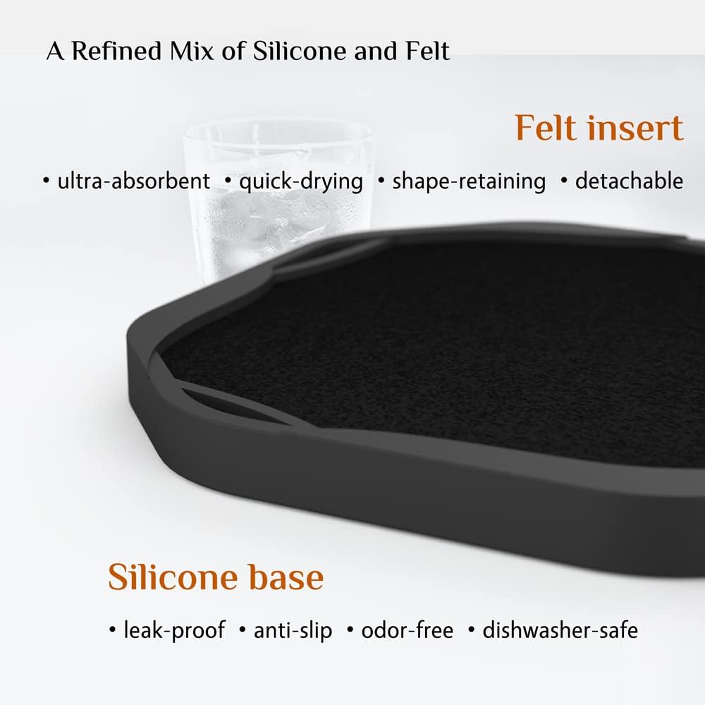 HYBRID SILICONE AND FELT – It combines the best of both materials for a lightweight yet durable, all-purpose coaster. The non-slip silicone base keeps your cups in place while the super absorbent felt insert soaks up any moisture from your glass. In addition, the decorative case has a pretty lip with charming reliefs around the edges, which nicely frames the tailored insert, preventing it from popping up